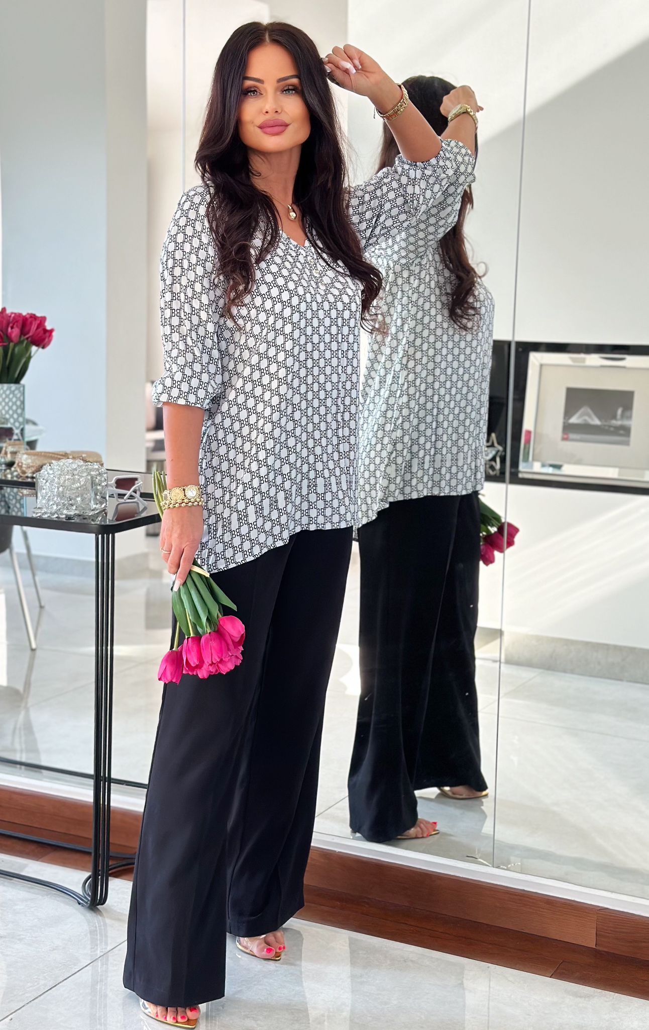 Intim Class to bluzka koszulowa, która łączy subtelność, lekkość i nowoczesny krój. Wykonana z miękkiej, przyjemnej w dotyku wiskozy, pięknie układa się na sylwetce i zapewnia komfort przez cały dzień.