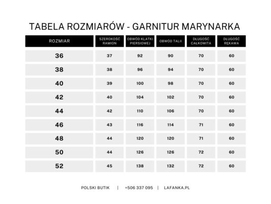 Klasyczny, kobiecy garnitur, który łączy w sobie elegancję i nowoczesność. Idealny na każdą okazję, podkreśla sylwetkę i dodaje pewności siebie. Wykonany z najwyższej jakości materiałów, zapewnia wygodę i styl przez cały dzień.