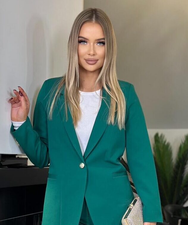 Klasyczny, kobiecy garnitur, który łączy w sobie elegancję i nowoczesność. Idealny na każdą okazję, podkreśla sylwetkę i dodaje pewności siebie. Wykonany z najwyższej jakości materiałów, zapewnia wygodę i styl przez cały dzień.