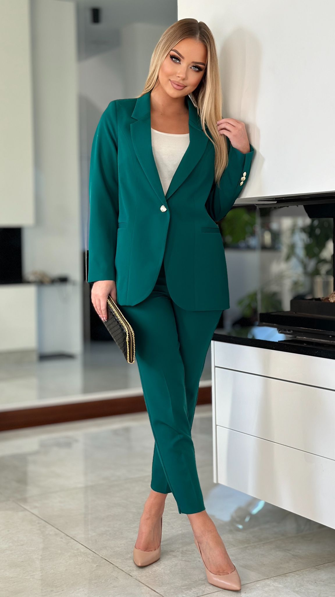 Klasyczny, kobiecy garnitur, który łączy w sobie elegancję i nowoczesność. Idealny na każdą okazję, podkreśla sylwetkę i dodaje pewności siebie. Wykonany z najwyższej jakości materiałów, zapewnia wygodę i styl przez cały dzień.
