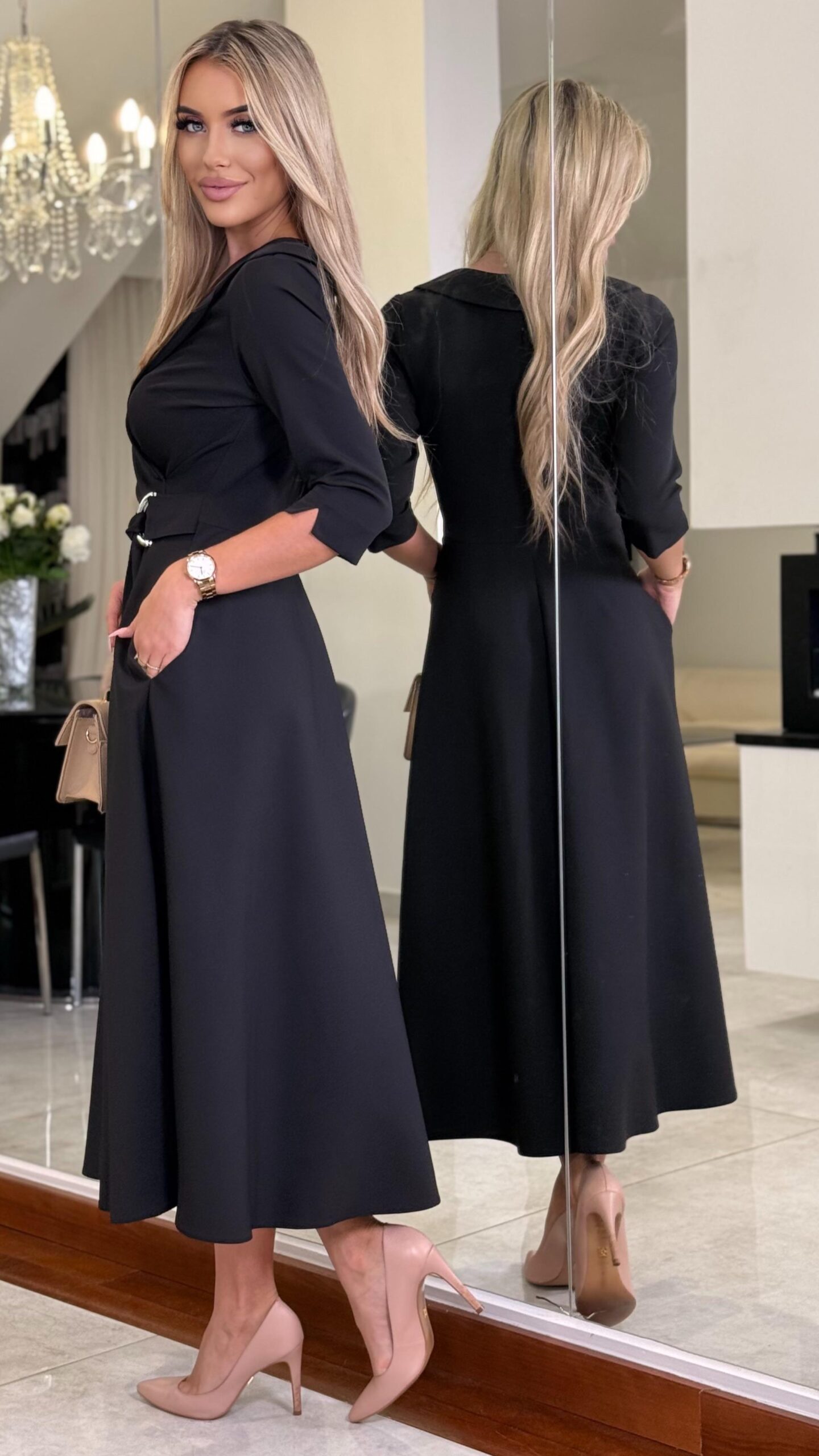 Utrzymana w szlachetnym odcieniu czerni, zaprojektowana z myślą o kobietach, które łączą klasę z wyrazistością – świadomie i bez kompromisów.