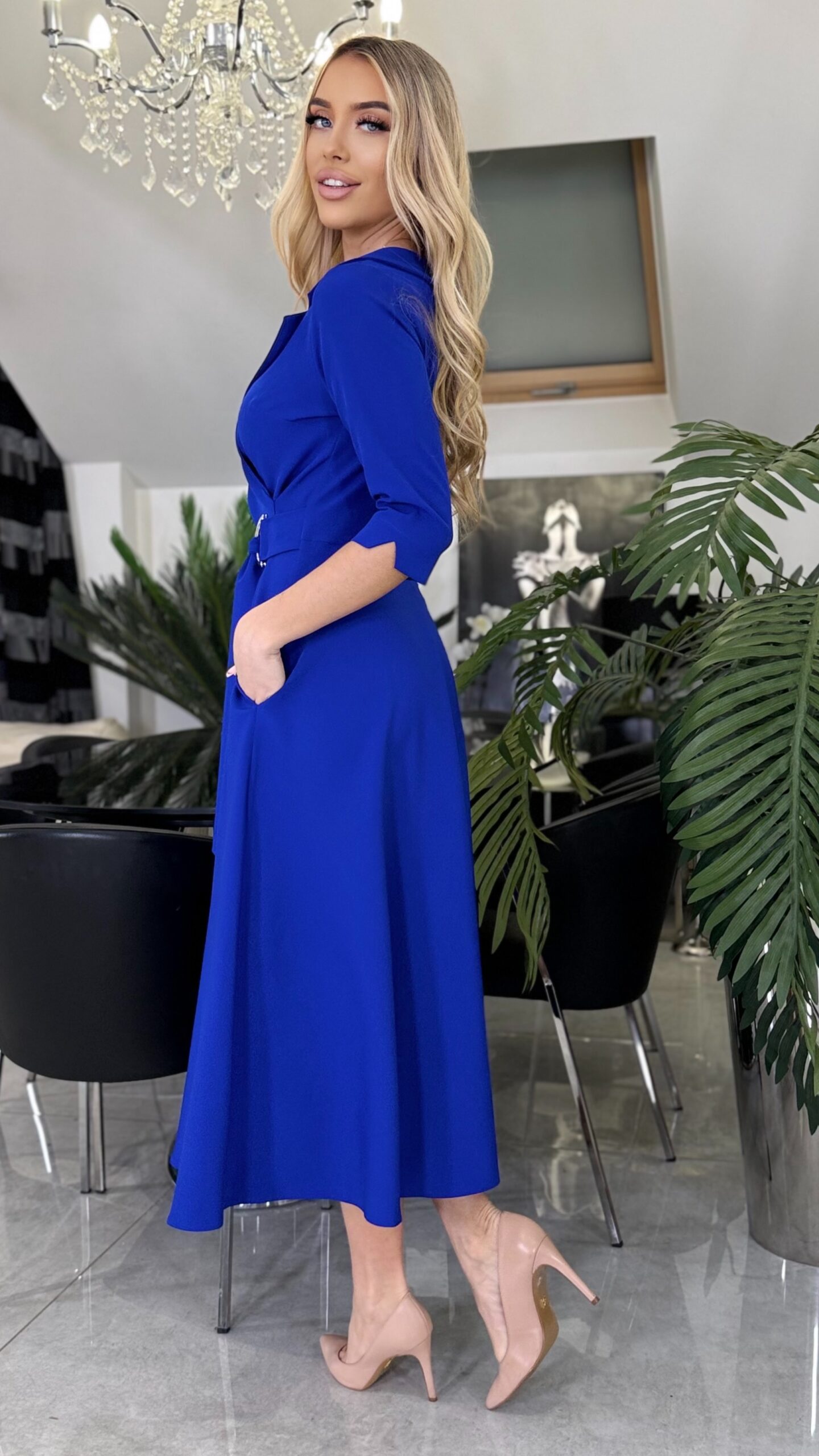 Dopasowany, ale jednocześnie swobodny krój subtelnie podkreśla sylwetkę, a wysokiej jakości tkanina zapewnia wygodę noszenia przez cały dzień. Minimalistyczne detale, staranne wykończenie i ponadczasowy fason czynią tę sukienkę doskonałym wyborem dla kobiet, które cenią styl i uniwersalność.