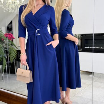 Dopasowany, ale jednocześnie swobodny krój subtelnie podkreśla sylwetkę, a wysokiej jakości tkanina zapewnia wygodę noszenia przez cały dzień. Minimalistyczne detale, staranne wykończenie i ponadczasowy fason czynią tę sukienkę doskonałym wyborem dla kobiet, które cenią styl i uniwersalność.