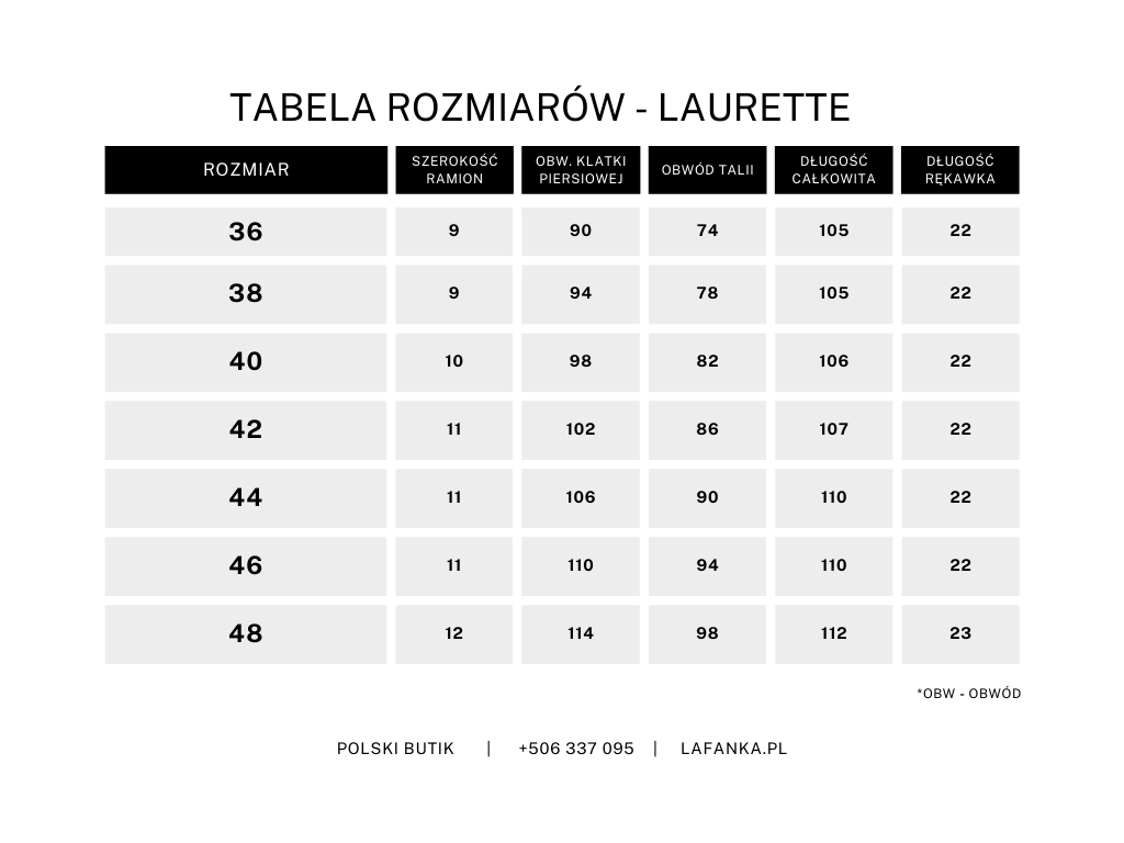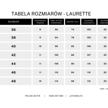 Sukienka Laurette to kwintesencja klasy i stylu. Jej elegancki fason sprawia, że jest idealnym wyborem na każdą okazję – od formalnych spotkań po wyjątkowe uroczystości.
